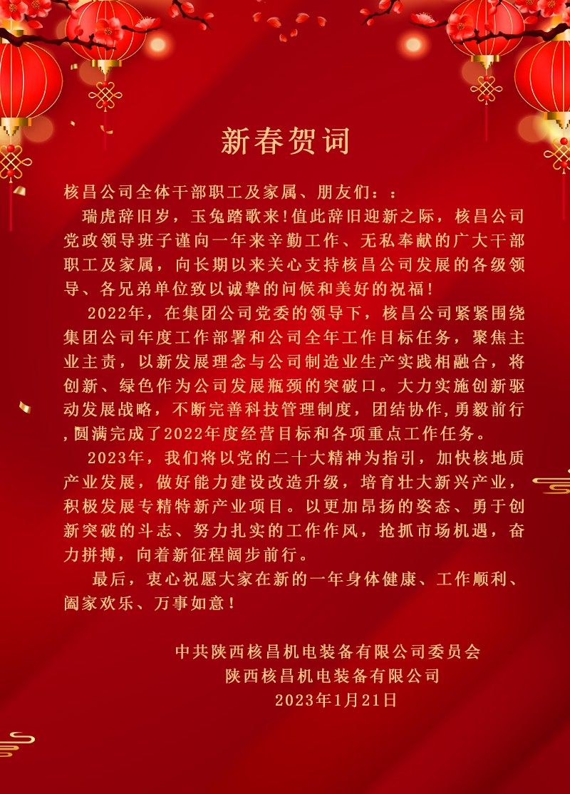 2月3日上午9時,陜西核昌機電裝備有限公司召開2023年安全環保工作會暨安委會(擴大)會議。黨委書記、董事長、安委會主任王超宏出席會議并講話,副總經理、總工程師、安委會副主任白...