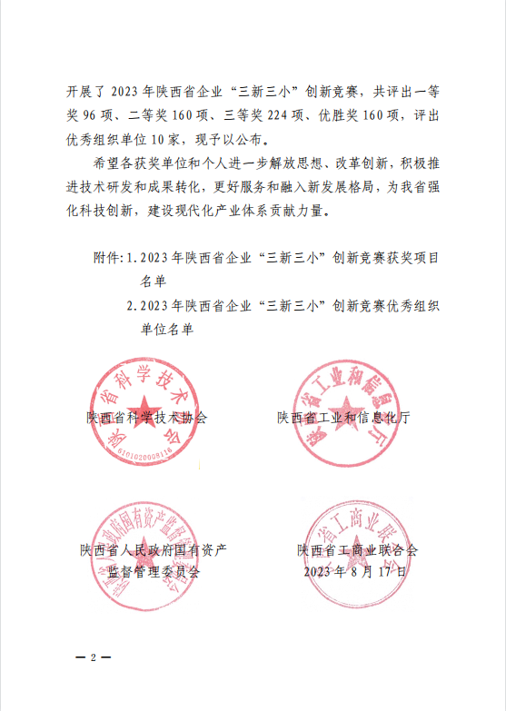 “三新三小”主要指企業(yè)經(jīng)營(yíng)活動(dòng)中的“新技術(shù)、新工藝、新材料”和“小發(fā)明、小創(chuàng)新、小改造”。“三新三小”創(chuàng)新競(jìng)賽由陜西省科學(xué)技術(shù)協(xié)會(huì)、陜西省工業(yè)和信息化廳、陜西省人民政府國(guó)有資產(chǎn)監(jiān)督管理委員會(huì)、陜西省工商業(yè)聯(lián)合會(huì)共同主辦,是圍繞產(chǎn)業(yè)鏈部署創(chuàng)新鏈、圍繞創(chuàng)新鏈布局產(chǎn)業(yè)鏈,引導(dǎo)企業(yè)弘揚(yáng)創(chuàng)新文化、營(yíng)造創(chuàng)新氛圍、傳播創(chuàng)新方法、激發(fā)創(chuàng)新熱情的省級(jí)創(chuàng)新競(jìng)賽活動(dòng),且競(jìng)賽項(xiàng)目必須是已經(jīng)在企業(yè)中實(shí)現(xiàn)全落地、有效運(yùn)行一年以上、取得一定社會(huì)經(jīng)濟(jì)效益的創(chuàng)新成果。